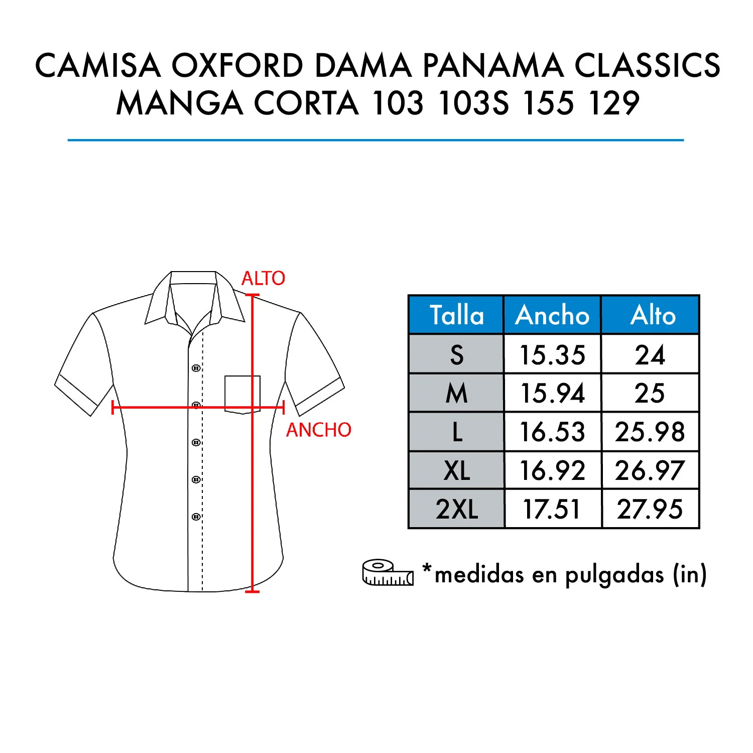 Camisa Oxford de Dama Panamá Classic Manga Corta 103
